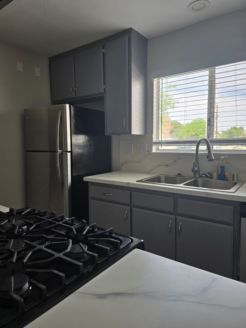 This lovely 2-bedroom located near the back gate of the base, is facing the alley behind Commercial Ave. There is a mini mart conveniently located nearby, and it's a just a short drive from the old-town Ridgecrest where they host the Night on Balsam event. The front yard is beautifully manicured, with lovely grass and roses.